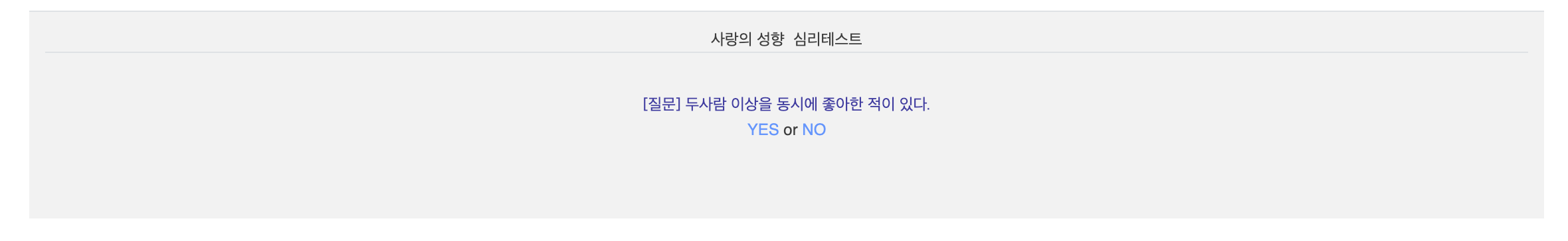 당신의 사랑의 성향을 알아보는 심리 테스트입니다. 자~ 시작 할까요?