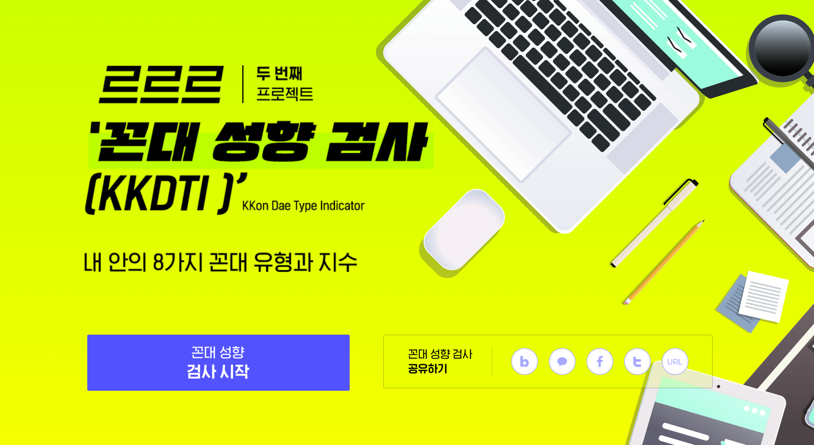 - 직장 생존 능력 고사, 첫인상 테스트, 이십세들 덕심 테스트, 연애 능력 테스트, 인터넷 '밈' 고인물 테스트