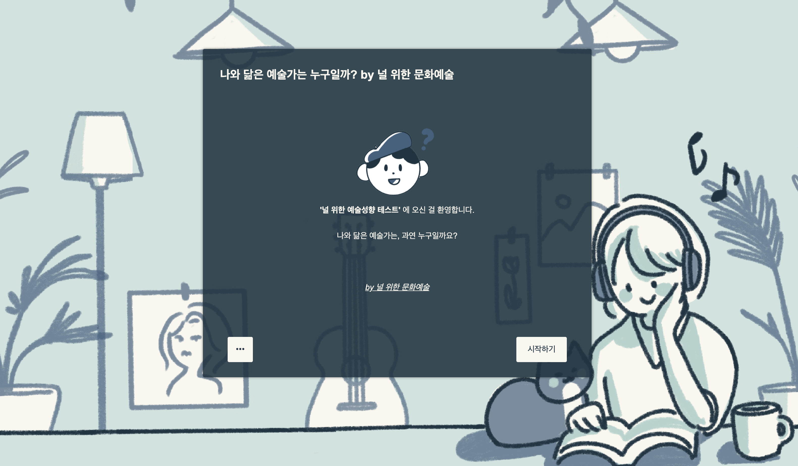 '널 위한 예술성향 테스트' 에 오신 걸 환영합니다.나와 닮은 예술가는, 과연 누구일까요? by 널 위한 문화예술