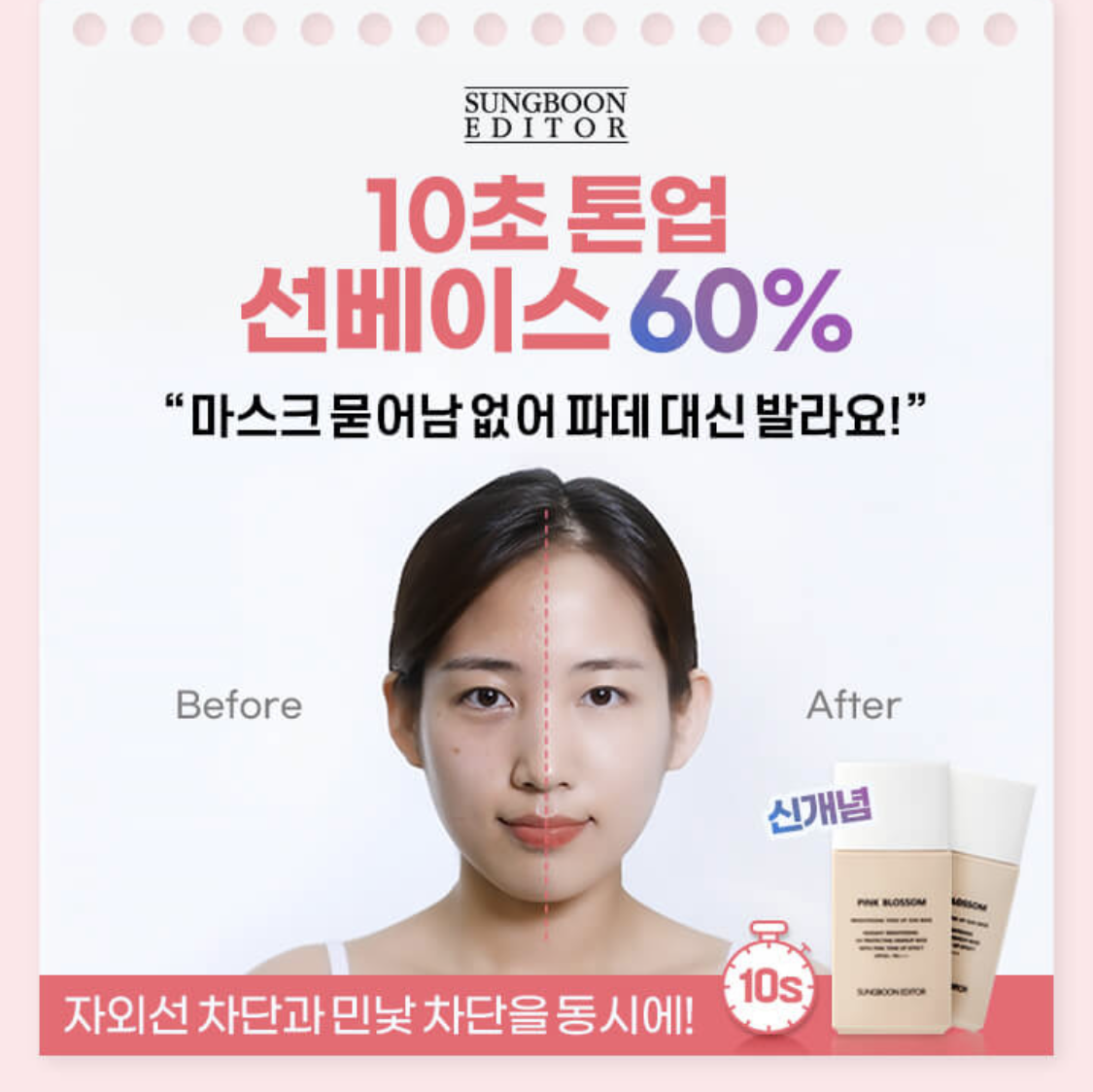 10초 톤업선베이스 캐시워크 정답, 성분에디터 10초 톤업 선베이스는 유기자차와 무기자차의 장점만 담은 OOOO로서 자극과 백탁현상은 줄이고 끈적임 없는 산뜻함과 즉각적인 UV 차단력을 자랑.. 본문