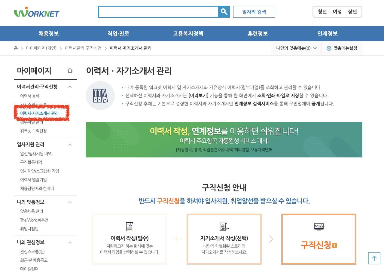 [워크넷 구직신청 온라인 경로]
