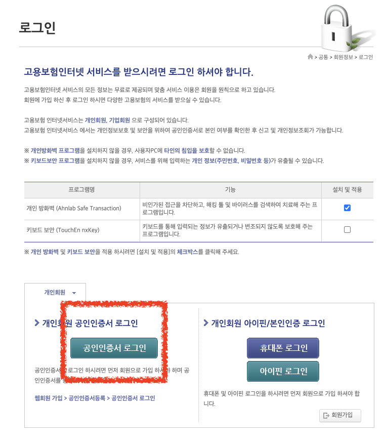 공인인증서 로그인
