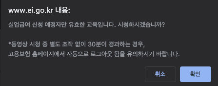 - 동영상 시청 중 별도 조작 없이 30분이 경과하는 경우, 고용보험 홈페이지에서 자동으로 로그아웃 됨을 유의하시기 바랍니다.