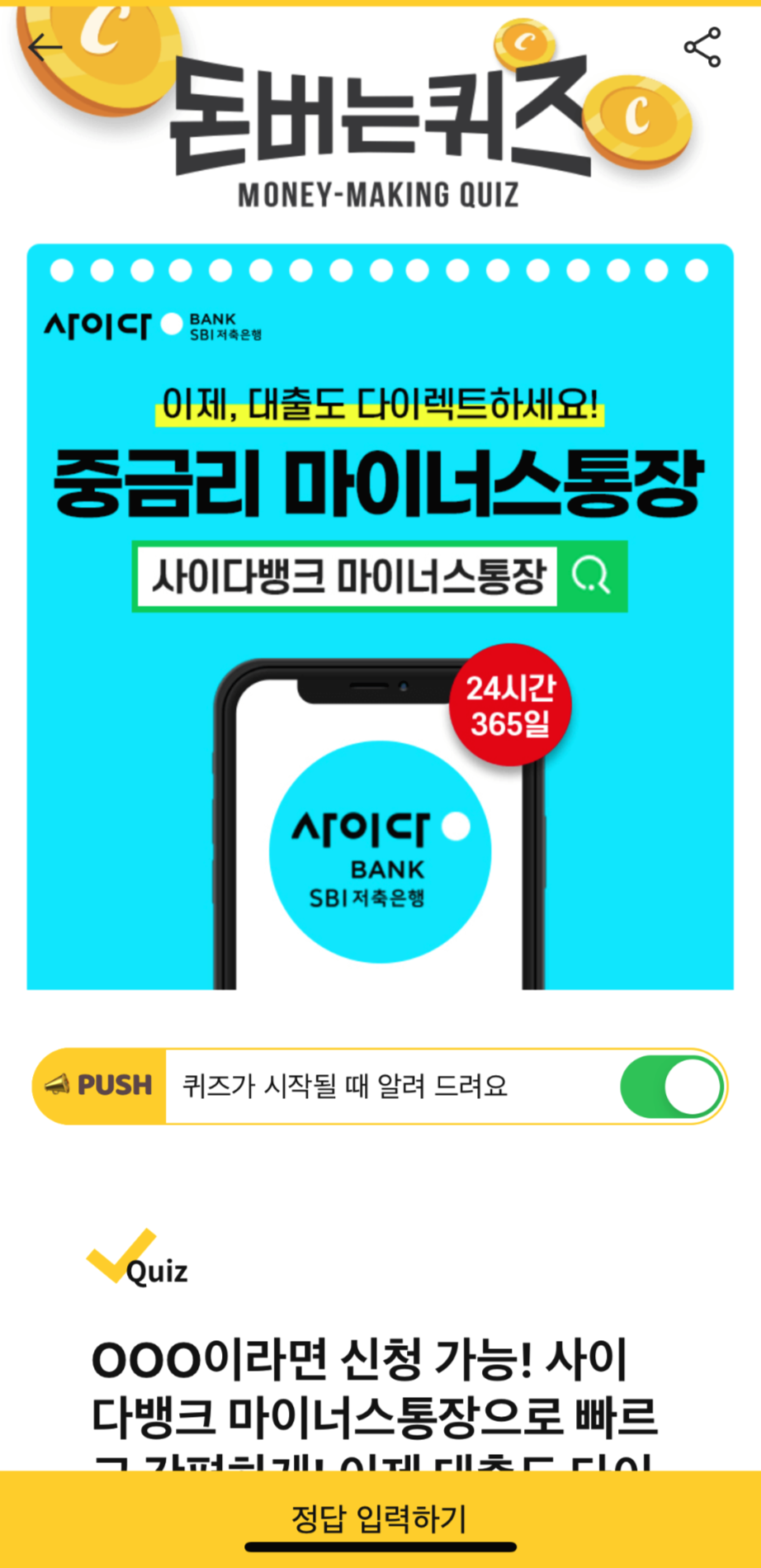 돈 버는 퀴즈는 정해진 캐시만큼 오픈되어 있으니 퀴즈가 생기면 늦지 않게 정답을 입력해야 캐시를 받을 수 있습니다.