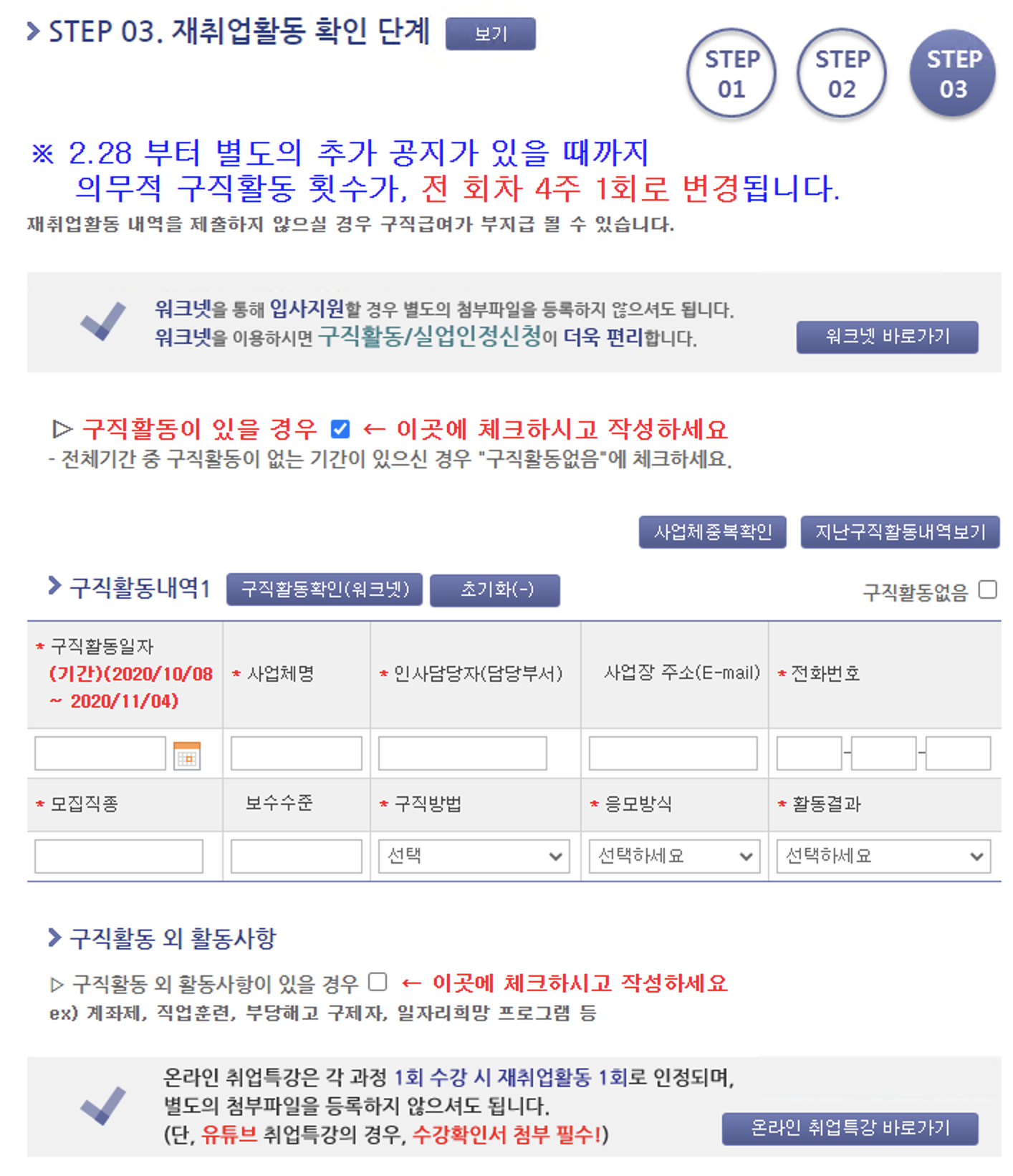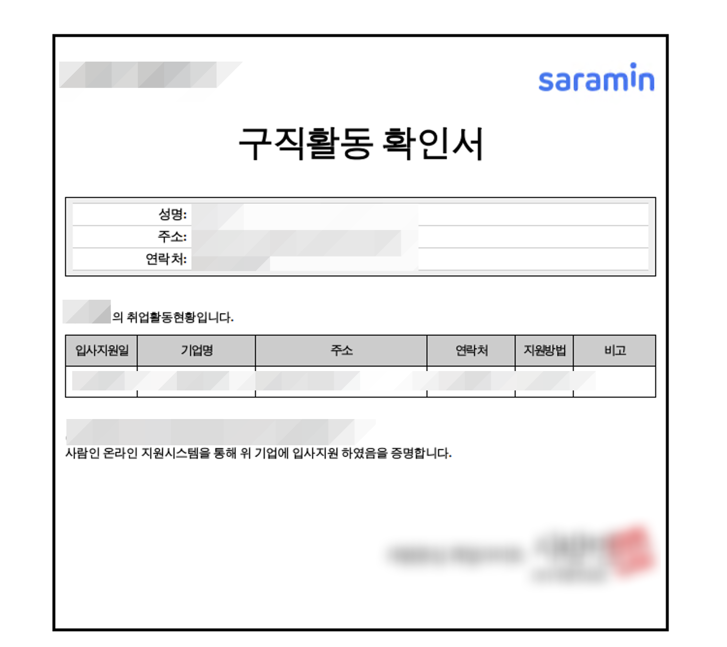 구직활동 확인서에 나온 대로 구직활동 내역 공란을 채우면 된다.