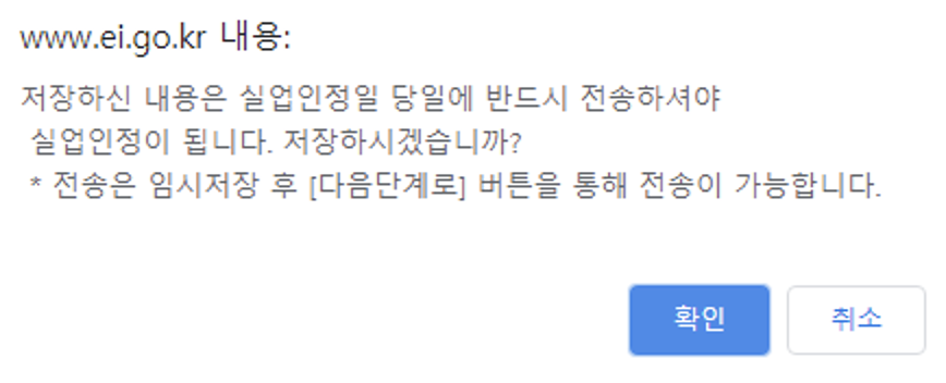 실업 인정일 당일이 아니라면 임시저장 버튼을 눌러 미리 작성해두면 된다.