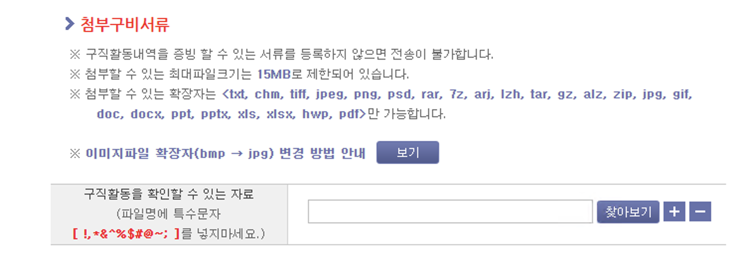 구직활동이 있을 경우 <- 이곳에 체크하시고 작성하세요